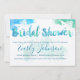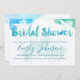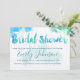 Inbjudningskort för möhippa Vintage Watercolor Typography med Trendig Whimsical Font in Shades of Blue. Perfekt för Beach Destination Wedding.