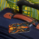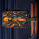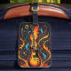 En bedövande elektrisk gitarr vilar i färg, som visar en blandning av sten energi och konstnärlig kreativitet.