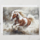 En dynamisk målning av en målarhäst som går genom vatten, som fångar det mäktiga rörelse och naturskönheten hos detta andliga djur i en vild.