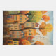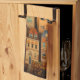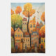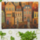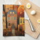 Färghus och träd i fall kökshandduk