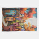 En scen med söta hus kapade mitt i ett blad av lövning, brinner i orange, blått och brons. Den terraced cityscape kaskades med en känsla av smak, som var och en byggt med sin egen unika karaktär.