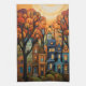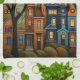 En scen med söta hus kapade mitt i ett blad av lövning, brinner i orange, blått och brons. Den terraced cityscape kaskades med en känsla av smak, som var och en byggt med sin egen unika karaktär.