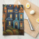 Färghus och träd i fall kökshandduk