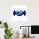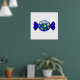Ett mycket färgat godis i en blå omslagare. Den här designen ser ut att vara verkligen på den här Poster