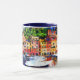 Snygg keramisk mugg utförd på en imponerande person som målning av färgstarka hus på sjö front. Anpassa för att lägga till egen text.