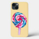 Funkyns färgstarka, jättelika lollipop-vattenfärgsoriginalbild av godis på ett pinne. Rosa, lila och blått.
