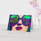 Jag tänker på dig. Söt dam tittar i staden genom sina stora solljor med en reflektion över stadens färgstarka AI-konst. generativeContent