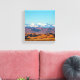 En häpnadsväckande syn på bergsområdet Tien Shan, med toppar med snö-tak som på ett vackert sätt står i kontrast mot det tydliga blå himmel. Förgrundsinformationen har en stor utbredning av torra marker med fläckar av gult vegetation, som lägger till djup och struktur till scenen. De överlagrade bergen i avstånd, med sina skiftande röda och bruna nyanser, skapar en känsla av storhet och . Det övergripande intrycket är att det är en naturskön och lugn som inspirerar oss.