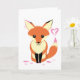 En räv som målar ett rosa hjärta med svan. Lägg till en anpassningsbar hälsning och namnteckning på insidan.