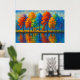 En tyst lund står i strålande trots mot det vanliga - varje träd höljt i en annan nyans, som känslor gjorda synliga. Deras speglingar dallrar varsamt nedanför, fördubblar drömlandskapet och suddar ut gränsen mellan verklighet och dagdröm. Detta verk inbjuder betraktaren att stanna upp, andas och lyssna till den tysta symfonin av färg och minne. Det är en meditation över individualitet, harmoni och skönheten i speglade sanningar.