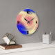 Väggklocka med färgstark bakgrund.