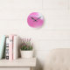 Väggklocka täckt av ett färgstarkt smam av rosa och vitt. Anpassade.
