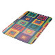 Med en dynamisk blandning av ljusa nyanser i en rutnätsliknande design kombineras retroestetik med en modern abstrakt.