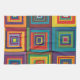Med en dynamisk blandning av ljusa nyanser i en rutnätsliknande design kombineras retroestetik med en modern abstrakt.
