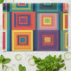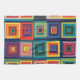 Med en dynamisk blandning av ljusa nyanser i en rutnätsliknande design kombineras retroestetik med en modern abstrakt.