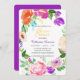 En djärv och skarp andedräkt i blommigten är det som finns på det heliga inbjudningskort för möhippan-kortet. Färg omfattar lila, rött, violett, rosa och grönt, med en beröring av guld och akvblått. Utandningen innesluter anpassningsbarnas text i grått, guld och violett. Kortets baksida är fast matchande violett lila. Vackert! *Den här designen användor grafik från www.CreateTheCut.com.