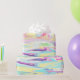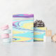 Modern multifärgad abstrakt som målar retro surreal mönster, fylld med korallrött, rosa, lila, turkos, gult, grönt och vit pastel färg som vågigt linjer, psykedelisk illusion, estetisk bakgrund. Ett kreativ för trendig regnbåge färg är en unik för vätskekonst 70s kreativ-målning.