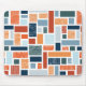 Abstrakt Mid Century stil-design med orange, röd, blå, ljusblå, turkos, senap färg och marin blå fyrkant och rektangulära former dekoration på vit bakgrund