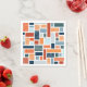 Abstrakt Mid Century stil-design med orange, röd, blå, ljusblå, turkos, senap färg och marin blå fyrkant och rektangulära former dekoration på vit bakgrund