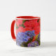 Söt mugg har mitt originalfoto av blommor från Hydrangea-trädgården i färgtoner. Handtaget och innanför kopp är en röd ton som kompletterar teckningen. Det här är 11 uns mugg, bara den perfekt som är storlek för ditt bryggkaffe eller te - eller till och med hett choklad! Det skulle vara en underbar gåva och man kan lägga in paket med kaffe, tepåsar eller hett choklad. En annan presentidé är att lägga en liten växt i den för att göra extra speciellt för din älskade.