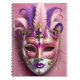 Illustration av färgfull karneval mask på rosans bakgrundsbärbara dator.