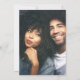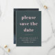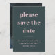 Dessa moderna och elegant bröllop sparar datumkorten med fet, rosa typografi som dekorerar framsidan av denna minimalistiska mörk charkolblått bröllop. Kortets baksida visningar ditt favoritfoto.