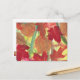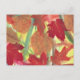 Färgfull roligt av höst löv på en abstrakt med pastellbakgrund skrivs ut på vykort.