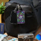 Modern och färglös fyrkantig konst med rörelse. Utformning för bagagetaggen med mera.