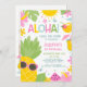 Färgfull Rosa Foto Pineapple Aloha Birthday Bjud Färgfull aloha eller ananas som tema första födelsedagsfest inbjudan för flicka med sol, stor ananas, sommardrycker, vattenmelon, tropiska blommor av rosa och ett foto på baksidan. Den här färgfulla alaresammanbjudan till födelsedag kan användas i alla åldrar.