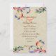 Färgfull rulla löv på beige mönstrad bakre bakgrundsbröllopsinbjudan, med en färgstark färg i färg rulla löv i regnbåge på beige mönstrad bakgrund.