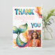 Färglös Sjöjungfru på födelsedagen Tack för att du har ett flickfotokort. Tack för att du fyller sjöjungfrun för dina vänner och din familj. Ladda upp fotot och anpassa kortet med ditt namn och din text. Kortet har en färgstark sjöjungfru och ett färgstarkt tack.