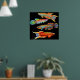 Målning av fyra moralfiskar med designern/illustratorn Carolyn McFann tryckt på en kvalitetsmärkning av älskare och hobbyister för akvariefisk och poster.