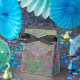 Den här färgstarka alkoholen bläck inspirerade designen med skarpa vår-gröntar och djup burgundi med rosa- och turkoshöjningar.