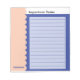 Ett estetiskt färg blockerar anteckningsblock i Rosa, Klein Blue and White combo, med en coquette touch of scallop seging. Anpassa en användarrubrik, t.ex. PM, inköpslista, Att göra lista, checklista osv. Lägg till ett namn för att anpassa anteckningsblocket, skapar det speciellt. Det här anteckningsblocket är också idealiskt för att placera i väskan och göra anteckningar på plats bekväma.