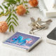En brant utformning med blå brev M med dekorativa fjärilar och flytande hjärtmotiv, omgiven av ett vismiskt system av färg och former. Perfekt för kreativ-, feste- och elegant-temaprojekt.