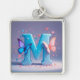 Färglöst Brev M med fjärilar Fyrkantig Silverfärgad Nyckelring