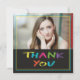 Ett sött foto av Studenten "tack" i färglösa bokstäver med ett hjärta i "o" i "Du".