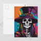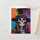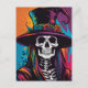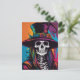 Ett färglöst skelett ansikte med blommigt halloween-vykort.