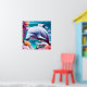 Färglöst delfiner i Blommigten Oceanen-Älskare Poster
