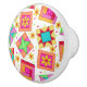 Du kommer att dra i den här lådan designat för ett kvarter eller ett älskare som kommer att göra ett rum ljusare. Lägg till dem i dina lådor eller skåp för färg. Originalteckningar med flytande mönster kombinerar femdubbla block i vibrerande och dynamiskt färg av orange, gult, rosa, rött, blått och grönt som hamnar på vit bakgrund. Block är pinhjul, stjärnor, logaritm, fyrkantiga och maskerade. Den här originalkonsten är av designern Phyllis Dobbs. Den här knoppen ger en underbar gåva till ett älskare och lägger till en snyggt och färgstark accent till dekorationen. Även om knapparna är små accenter kommer de att dyka upp med färg och göra ett underbart litet tack till er eller kärlek för medhjälparbetare.