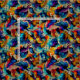 Detta är ett färgstarkt flerfärgat blått, violett, rött, gult, orange, svart och cyanabstraktion mönster i flytande bläck mot en ljusbeige bakgrund. Obs! Du kan ändra storleken på plattorna för att justera storleka på teckning genom att klicka på knappen "Anpassa den!".