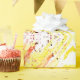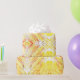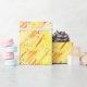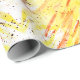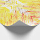 Färgfull födelsedagslackering papper för julfest med en vattenfärgsmålning i abstrakt gjorde jag med en varm färg palett med pulserande gult, orange och rött, plus några vita svarta prickar.