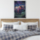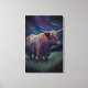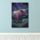 Färgfull höglandskö i gräset vid nattligt Kanvastryck. En vacker modern ko på en lantlig bete på natten omgiven av stjärnor.
