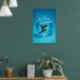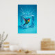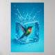 Färglöst Hummingbird Inside Ice Cube Neon Blue Poster