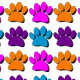 Utskrift av mönster med 3D-effekt på bilden på färgen Cute tecknad stil hund. Tassar i rosa, blått, lila och orange. Tanken på att skaka om hundälskarna och deras hundar.