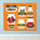 Färglöst krydda burk med olika kryddor som tumör, paprika, havsvik löv och basil mot en färgstark bakgrund. Perfekt för en hemkock eller en kock för dekoration eller för köksidéer.