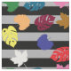 Färgfulla dekorativa former av Abstrakt i Löv på Grått Ash och svart Rand mönster Design-material. Texter tillgängliga i bomull, Pima-bomull, bomullstyg, Polyester Poplin, Polyester Weave, Ivory Linen och Natural Linen