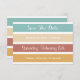 Färglöst Pastel Rand sparar datumkorten. Det finns fyra rand i olika färg (pastellfärgad orange, pastellblått, gult och rött pastellröd) på vit bakgrund. Texten har varit designad med lätt anpassning i åtanke, gå vidare och gör den till din egen! Du har matchande produkter tillgängliga i samlingen "Pastel Baby Shower".
