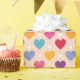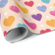 Ett dynamiskt och frikostigt, sömlöst mönster med färgstarka hjärtan i popkonst stil, med texturerad design i skuggor av rosa, gult, lila, blått och rött, kompletterad med små vita hjärtan på en mjuk persikobakgrund. Perfekt för alla hjärtans dagskonstruktioner, tapet eller hantverk.