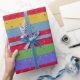 Roligt och färglös stripe helgdag papper har små stjärnor och snöflingor på rand.